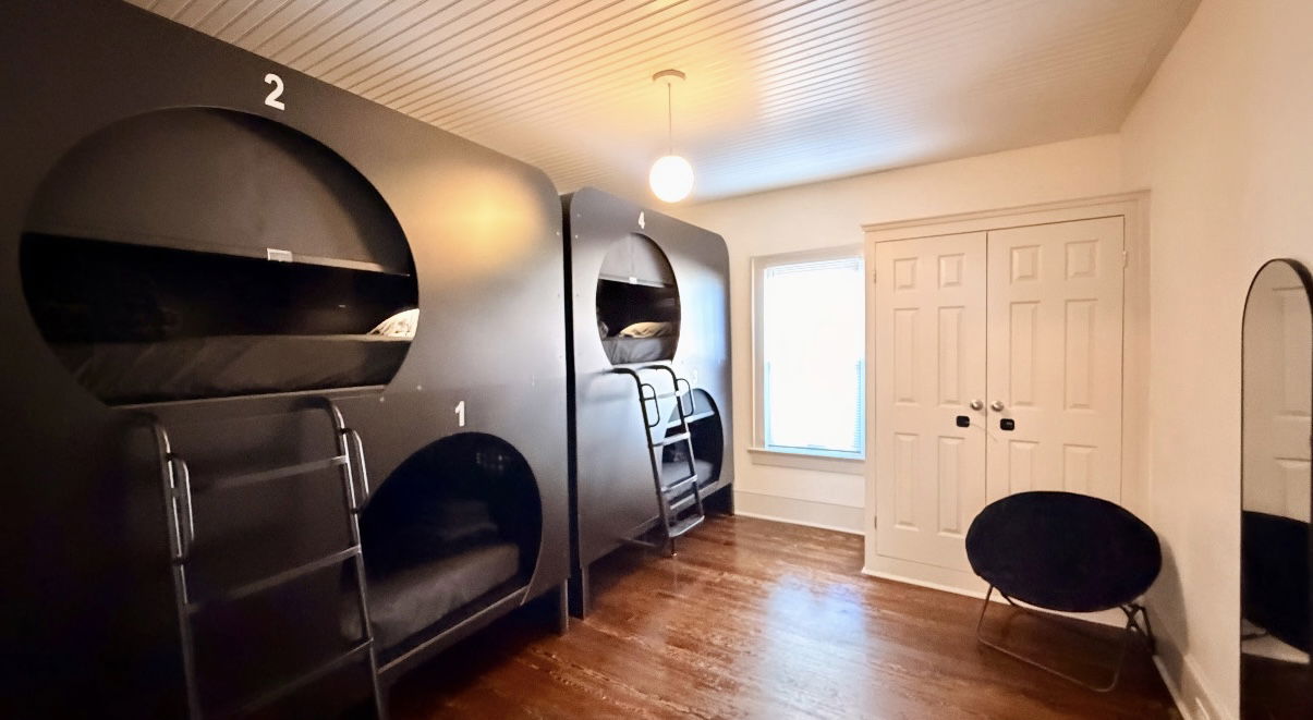 Hourly and nightly bookings available, with mixed, female-only, and private room options.